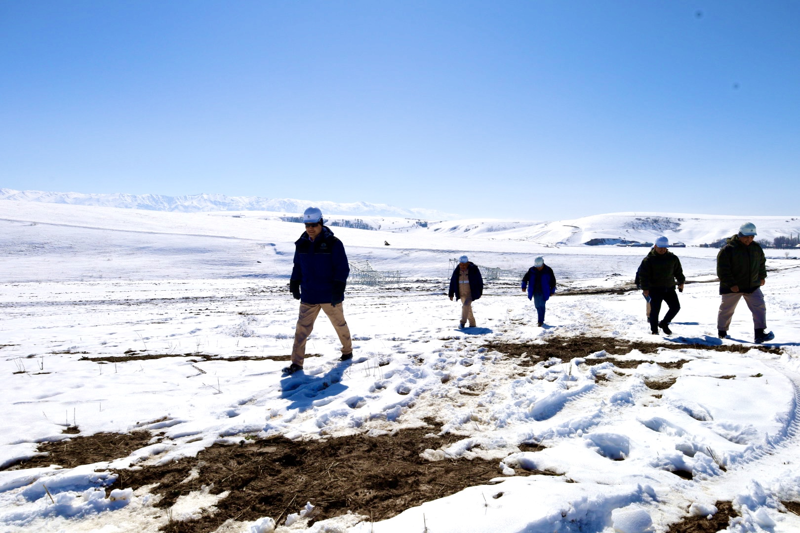 The management of CCGT Turkistan LLP, led by Chairman of the Management Board Ulan Burkitov, conducted an inspection of the 500/220 kV External Electrical Networks construction segment. During the site walkdown, the participants reviewed progress on the 220 kV Shymkent–Sastobe overhead line (OHL), which is 36 km 112 m long. The total length of the project’s external electrical networks is 111 km 595 m. The works are being performed by a consortium of Elektromontazh JSC and NIPII Energiya JSC.
