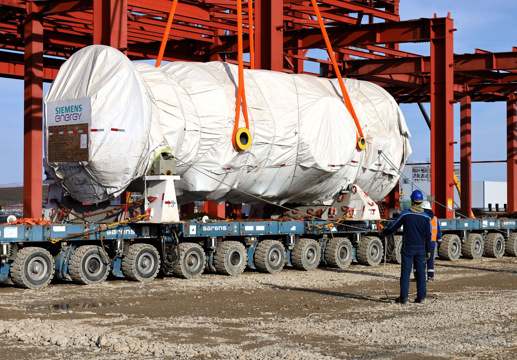 Currently, the turbine is placed on temporary supports to undergo high-precision alignment. Construction and installation works at the site are proceeding as scheduled.