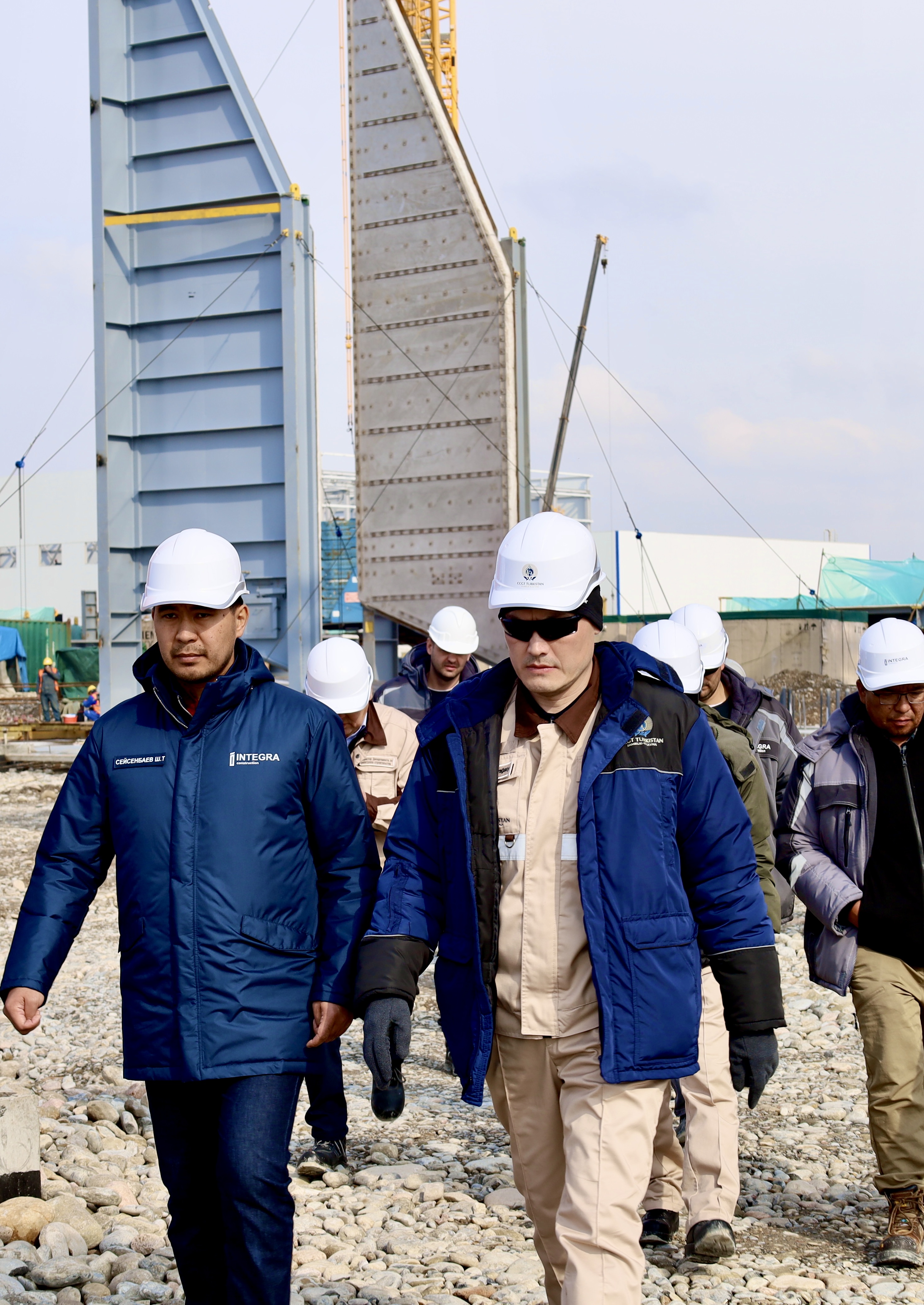 At the CCGT Turkistan project site, wall panels for the HRSG casing have been installed in the plant’s main building. The results of the works and installation quality were reviewed during a daily site walkdown by Ulan Burkitov, Chairman of the Management Board of CCGT Turkistan LLP, together with representatives of the general contractor consortium – Integra Construction KZ and Doosan Enerbility.