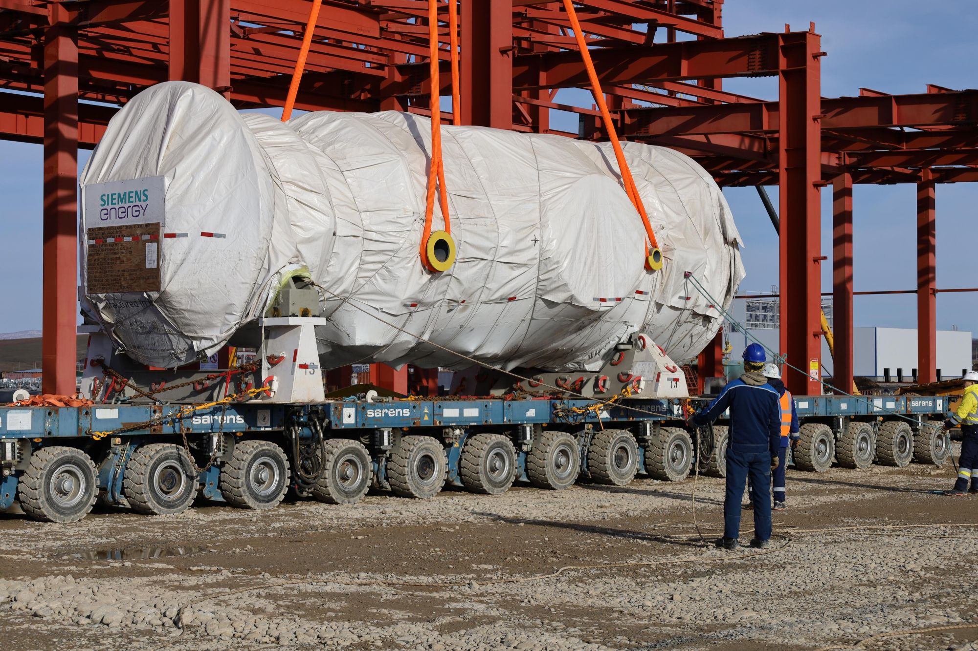 На текущий момент турбина размещена на временных опорах для проведения высокоточной центровки. Монтажные работы на площадке продолжаются в штатном режиме.